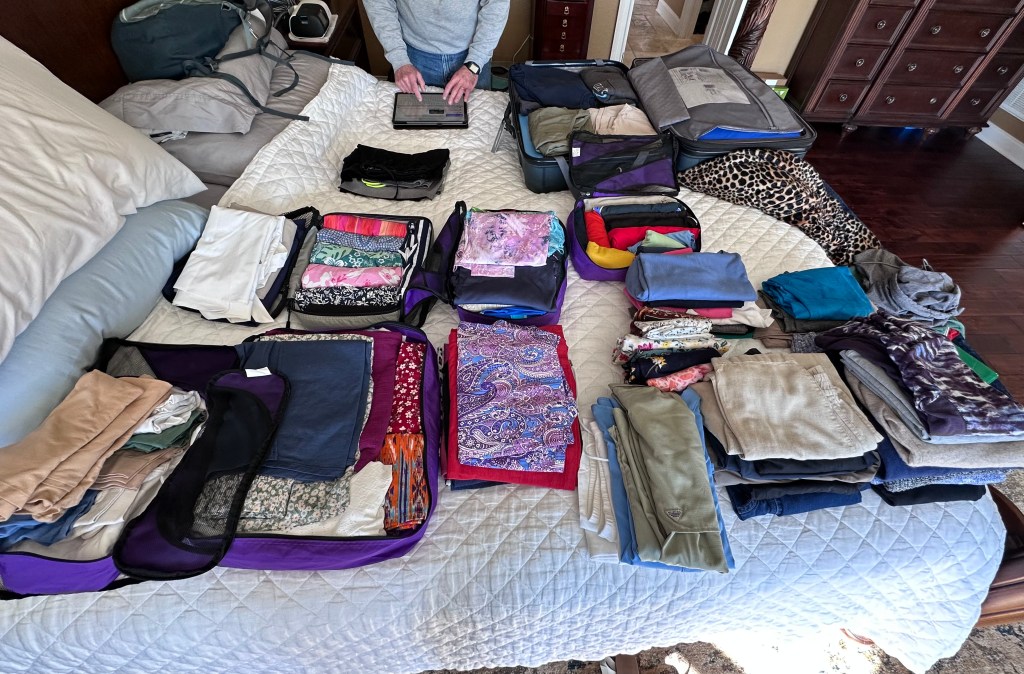 If you haven’t read the “About Me” page, please check it out. It explains what, why, and where we are going on a world cruise. We usually travel light and don’t check bags, but this time is different. The struggle is real to pack efficiency but still have some variety for all the different climates and cultures. Azamara will do one laundry bag a week per person. Therefore, I only need one week of clothes for each climate. This link had some excellent tips on actual packing.