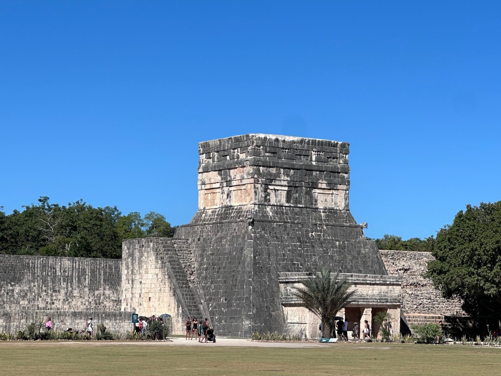 It is the second most visited of Mexico’s archaeological sites. Our guide, Armando, said that the average number of visitors varies from 2,000 to 12,000 a day. We were fortunate that it wasn’t very busy and not brutally hot. We saw several buildings/temples in the area, but the site includes even more. Some are too far for a group tour, and some are not open to the public at this time. They continue to do archaeological excavations.