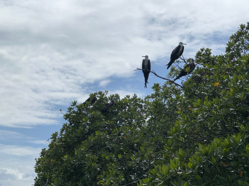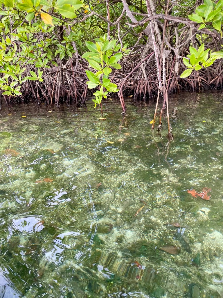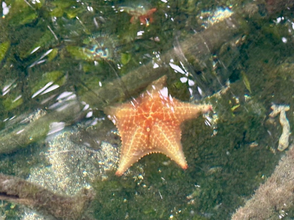 The mangroves scattered along the edges of the water made shallow water where we saw some starfish, and other marine life.