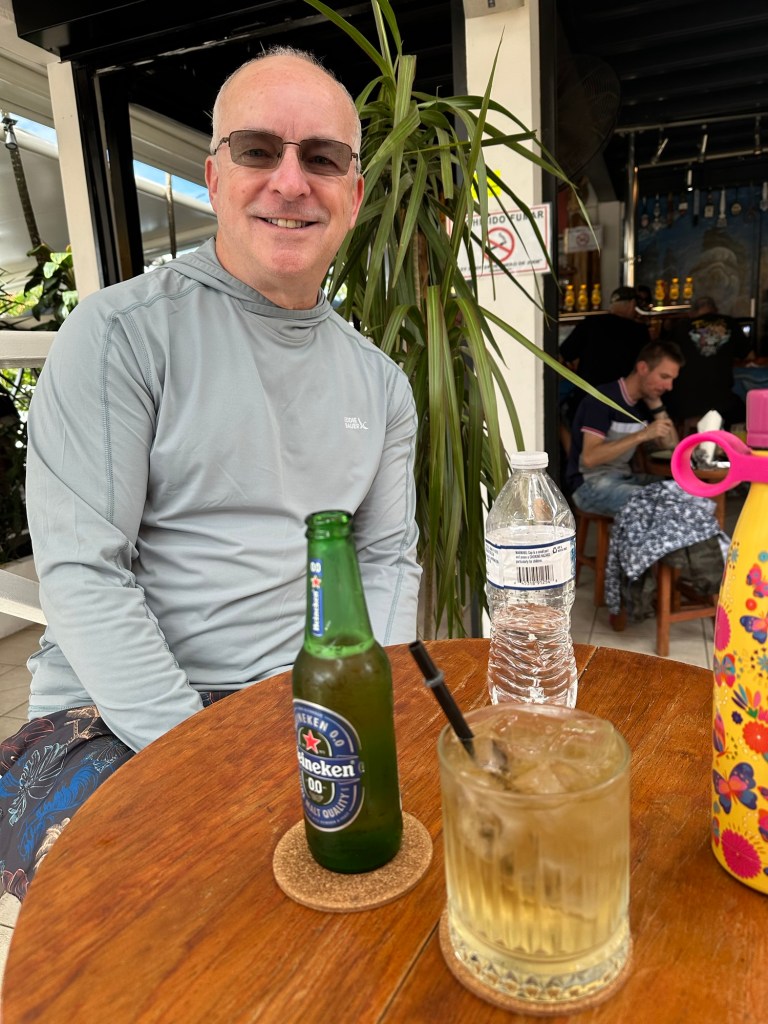 We also saw a boa snake in a tree, but our internet connection on board is not cooperating to download to the cloud. So when David takes some good pictures, I’m not able to get them.