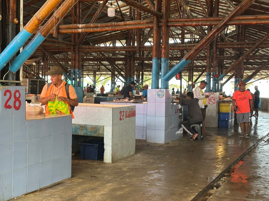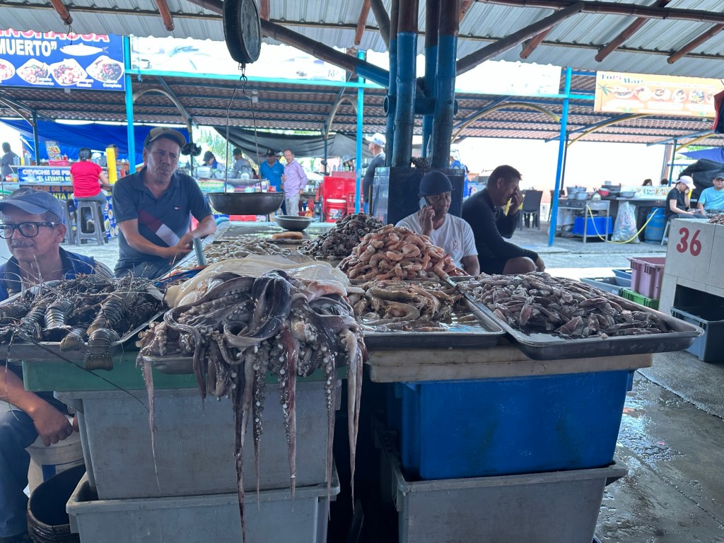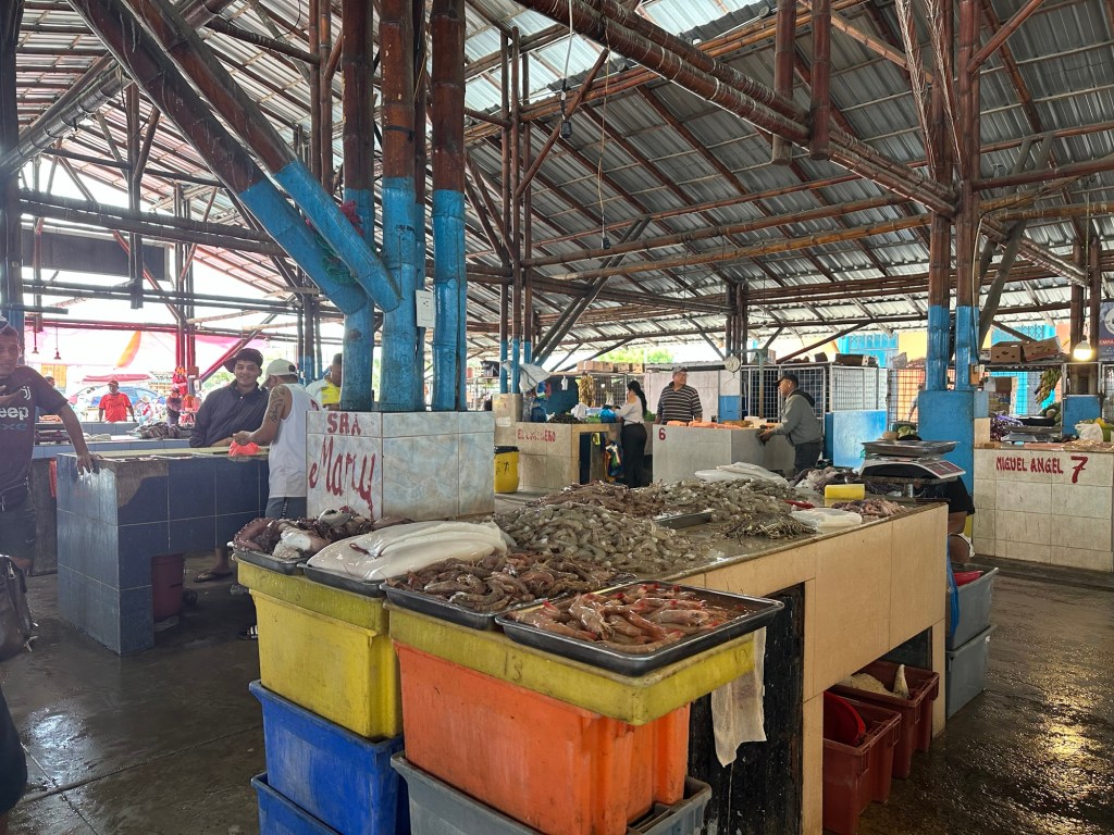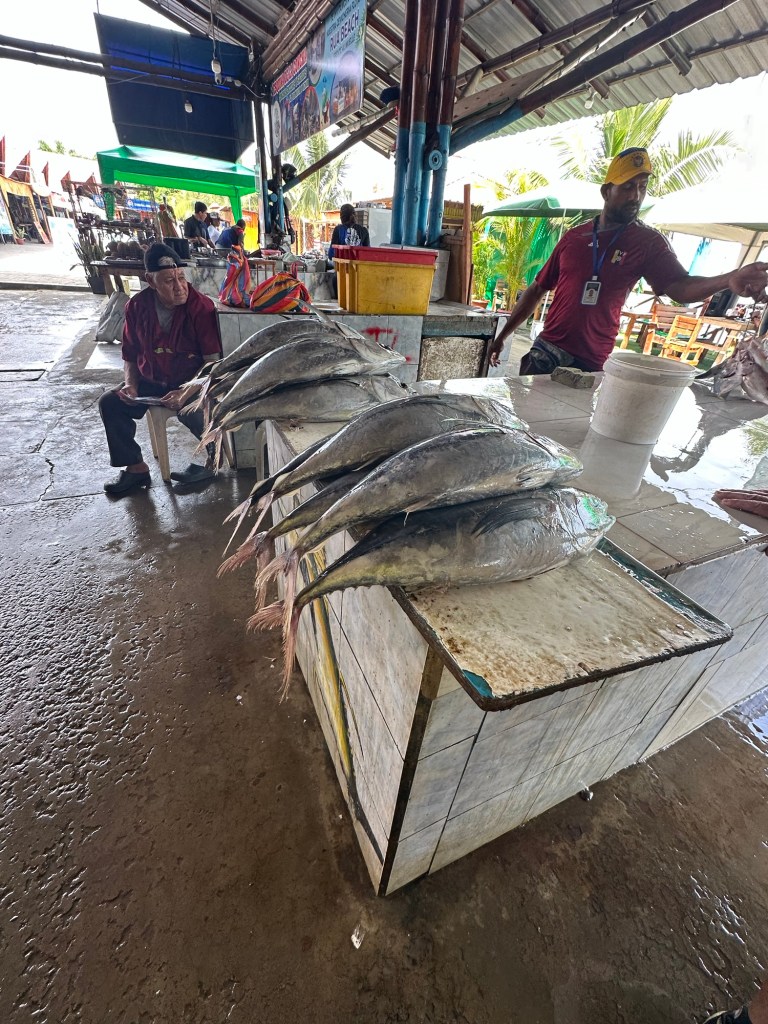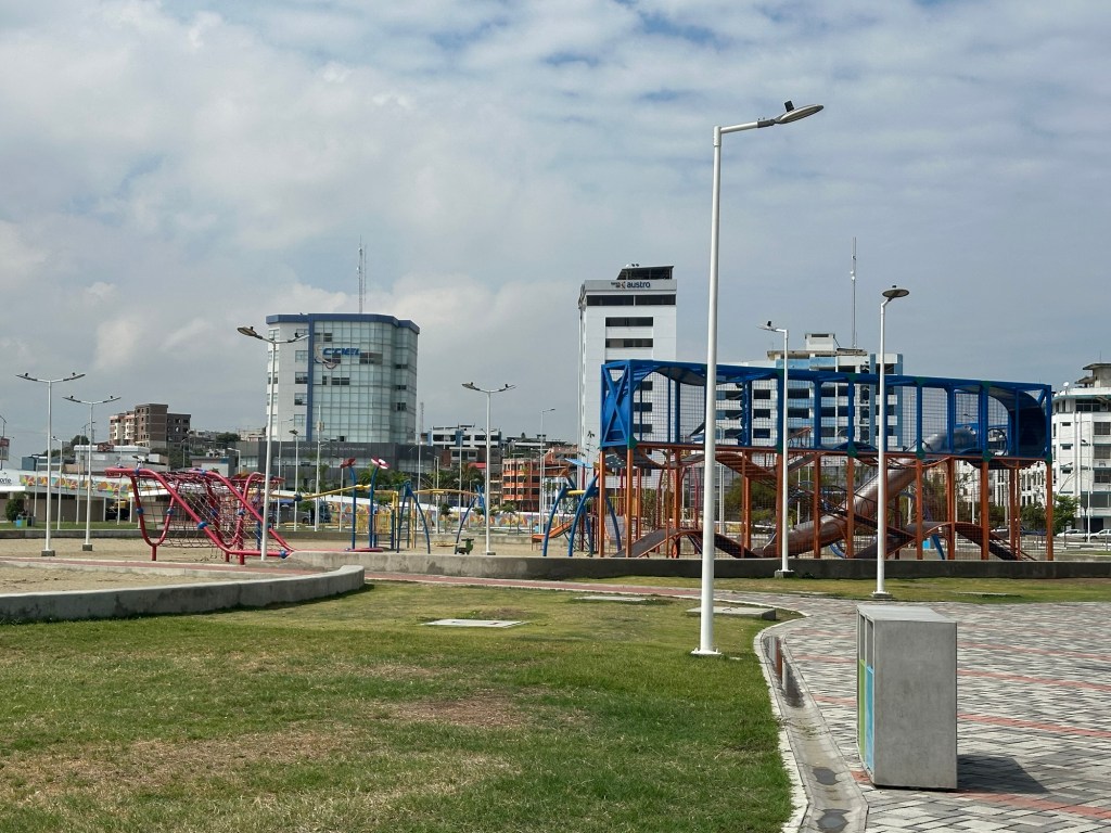 Manta is a coastal port along Ecuador’s Pacific Ocean and known as the world capital of tuna fishing. We headed to the fish market by foot. On the way we saw a huge new park.