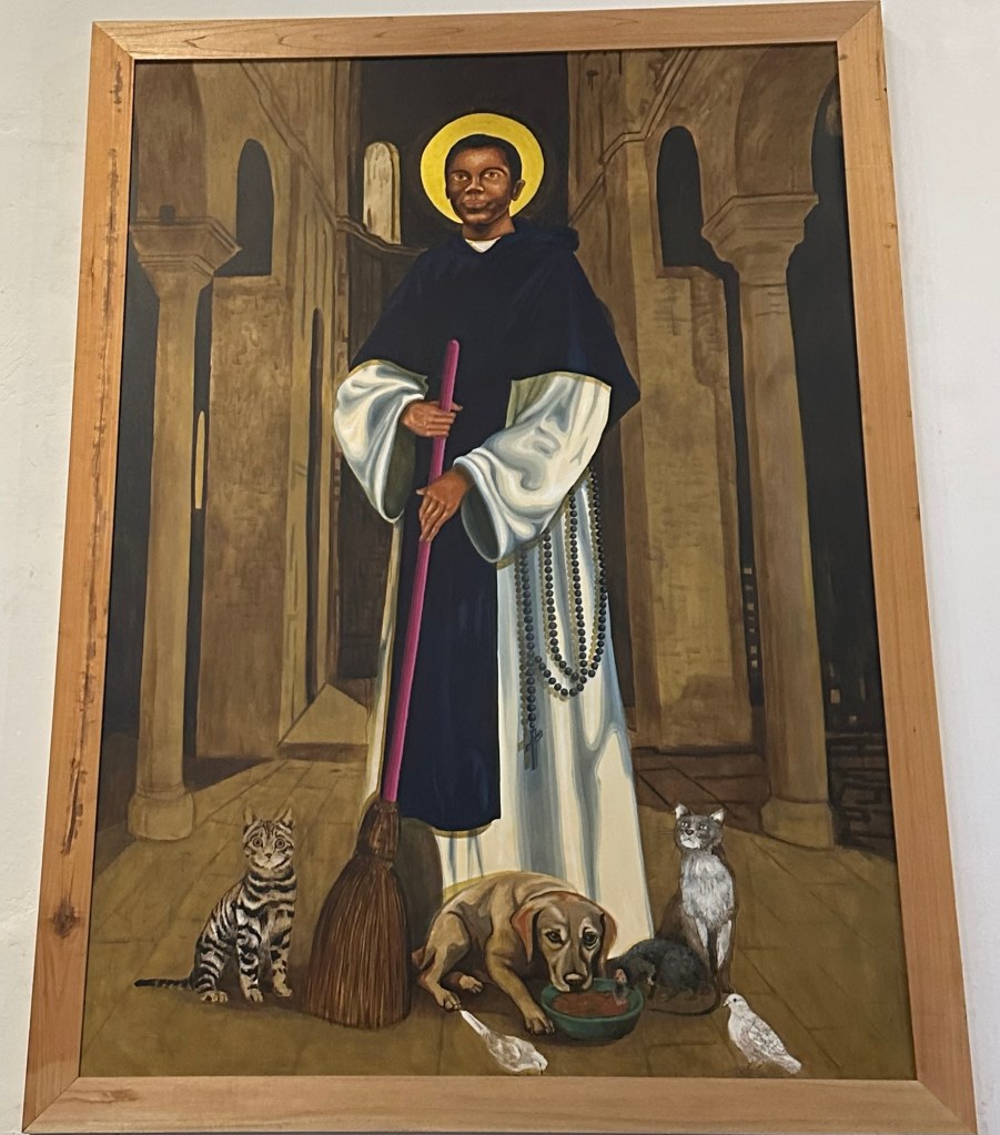 Saint Martin de Porres, a Dominican friar known for his humility and charity. He was an illegitimate son of a freed African slave. He wasn’t initially allowed to join the religious community, but eventually was allowed after serving as a volunteer cleaning and serving. He was a vegetarian, lover of animals and people, serving the sick and poor without regard to himself.